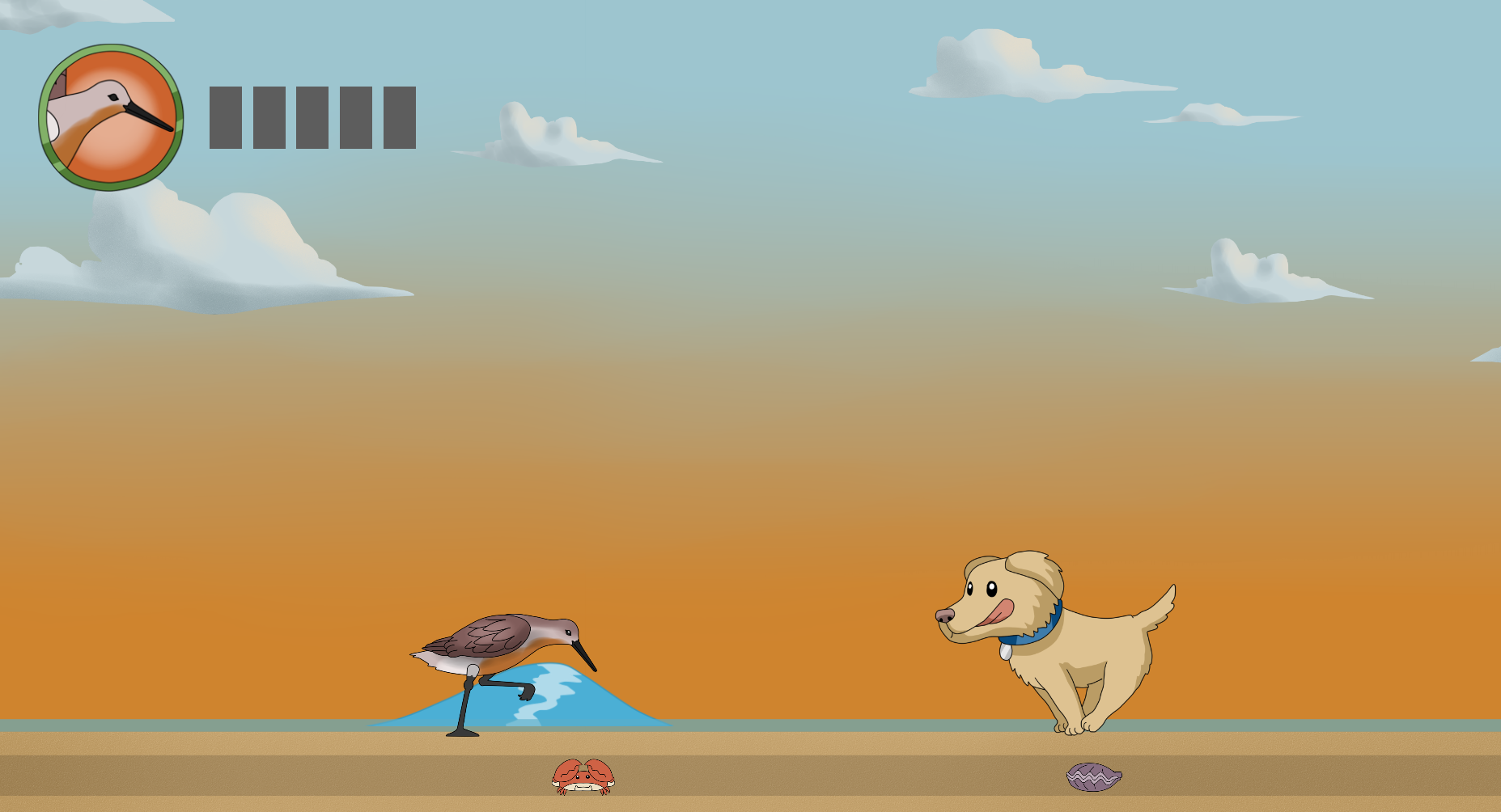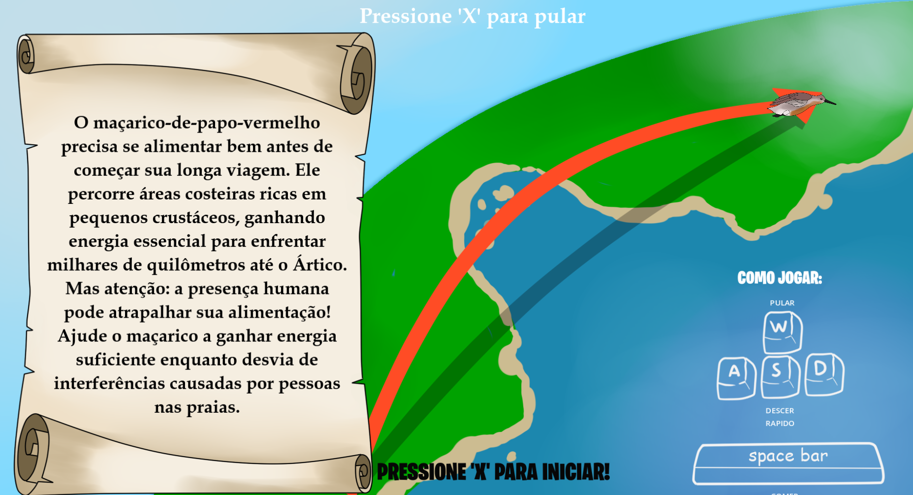 Utilize "S e W" para controlar o pulo, e BARRA DE ESPAÇO para se alimentar na primeira fase.